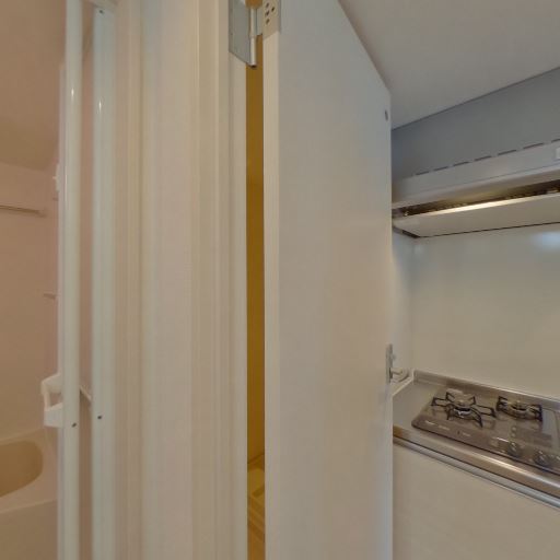 コンパクトなキッチンが近接している(確度82%):隣接スペースに1口または2口程度のコンパクトなキッチンが見え、ワンルームや1K向けの効率的な配置に見える。