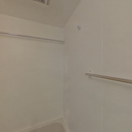 物干し・タオル掛けが複数あり実用的(確度87%):壁面にバーが複数設置されており、タオル掛けや室内干しに活用できそう。
