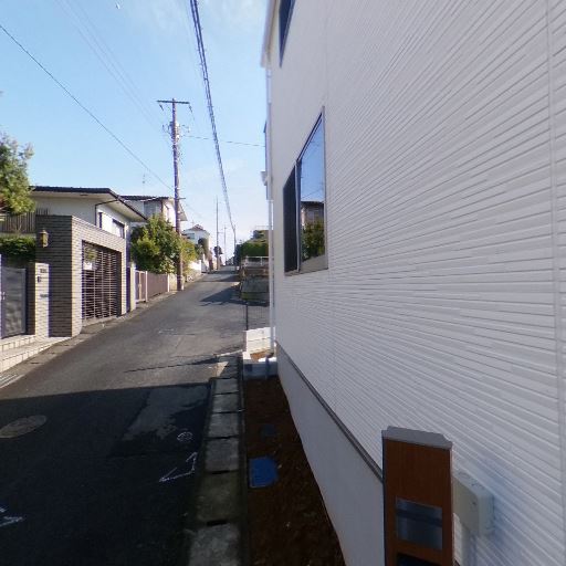 周辺住宅街の落ち着いた環境(確度70%):戸建てが並ぶ静かな住宅街で、背の高い建物や商業施設は見当たらない。
