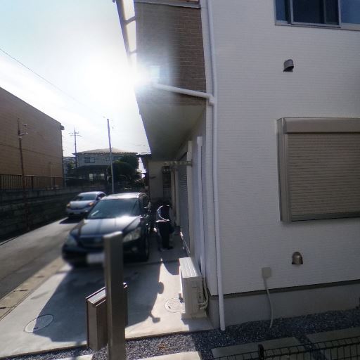 敷地内に駐車スペースあり(確度86%):建物前にコンクリート舗装の駐車区画と門柱が見える。