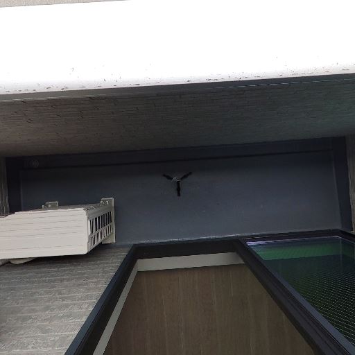 天井は軒が深めで雨をしのげる(確度69%):バルコニー上部にしっかりした庇があり、多少の雨なら吹き込みが抑えられそう。