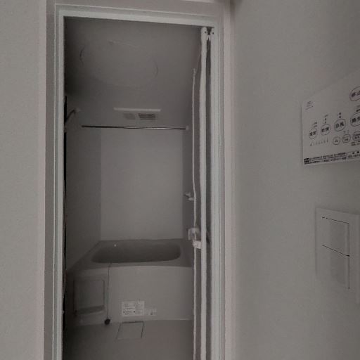 浴室が近接(確度90%):隣接するドアの先に浴室が見え、脱衣所・洗面所と一体の配置になっている。
