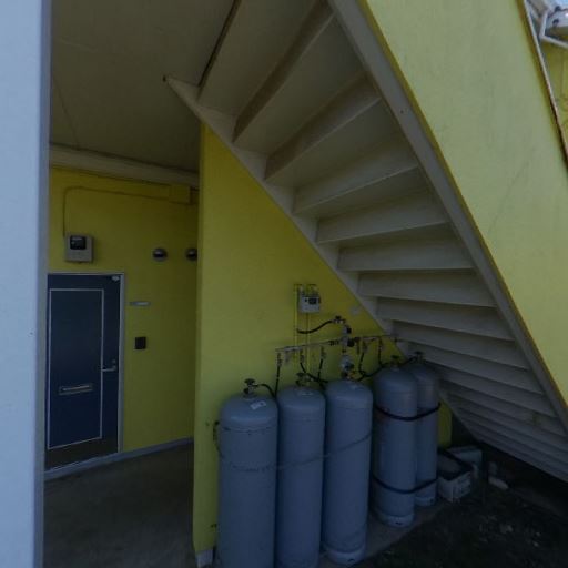 • ガスボンベ設置場所(確度90%):階段下付近に複数のガスボンベが設置されている。プロパンガス供給の物件と思われる。