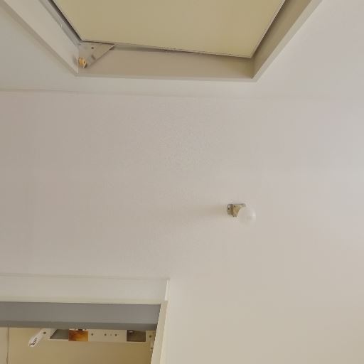 • 天井点検口と照明(確度78%):天井に点検口と裸電球タイプの照明器具が見える。