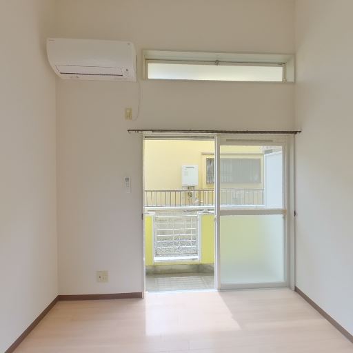 • エアコン設置済み(確度95%):壁上部にエアコン本体が見える。