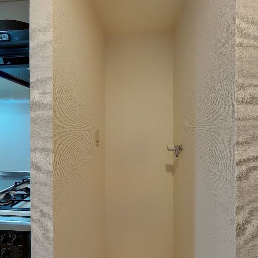 洗濯機置き場の独立スペース(確度82%):壁に給水栓があり、奥まった凹みに洗濯機置き場が確保されている。