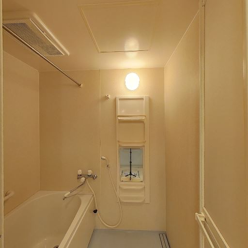 浴室乾燥・換気設備(確度86%):天井に換気扇があり、浴室乾燥や換気が可能と見られる。