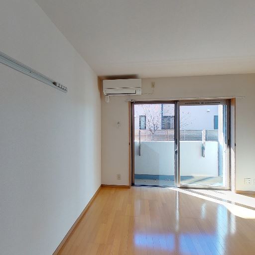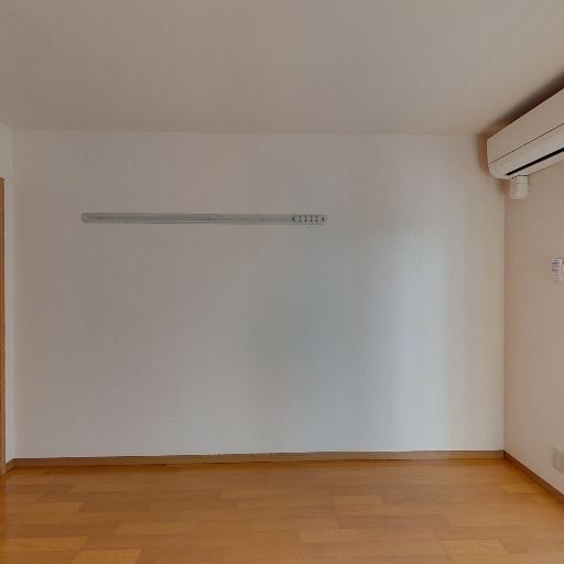 エアコン設置済み(確度88%):壁上部にエアコン本体が確認できる。
