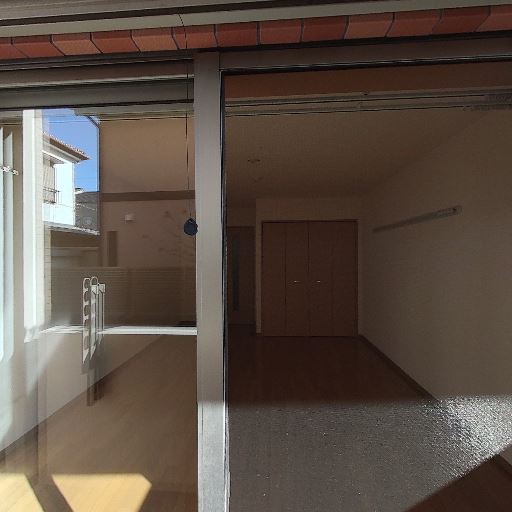バルコニーの採光・日当たり(確度86%):直射日光が差し込んでおり、バルコニーと室内側まで明るい。洗濯物の乾きも期待できる。