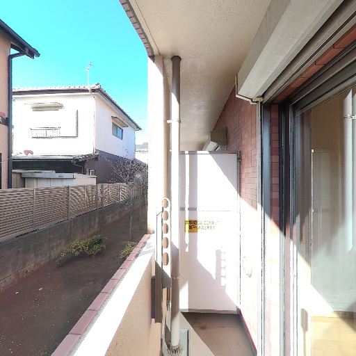 バルコニーの奥行きと動線(確度78%):エアコン室外機や給湯器が置かれており通路幅はやや狭め。物干しや出入りの際に人がすれ違うのは難しそう。