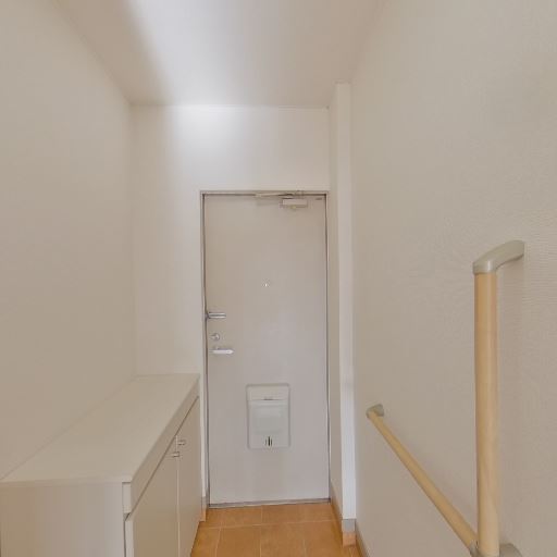 手すり付きで安全(確度84%):玄関からの上がり框付近に手すりが取り付けられている。