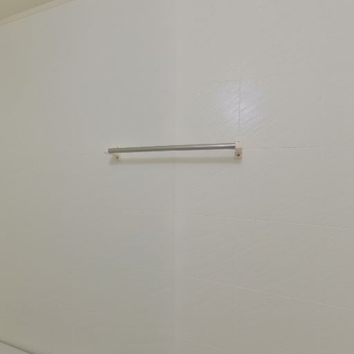 浴室内の収納・バー(確度76%):壁にタオルバーと小さな棚がある。