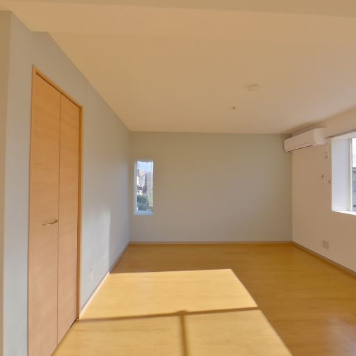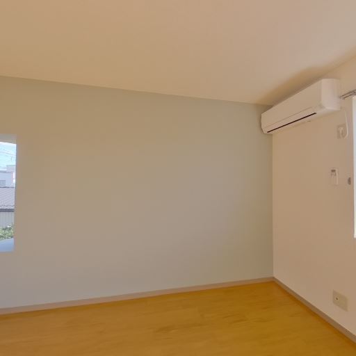 エアコン設置済み(確度86%):居室の上部に壁掛けエアコンが確認できる。