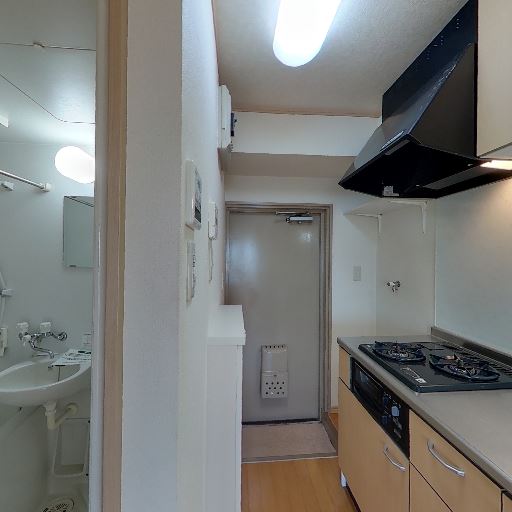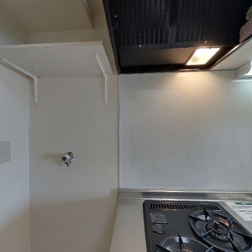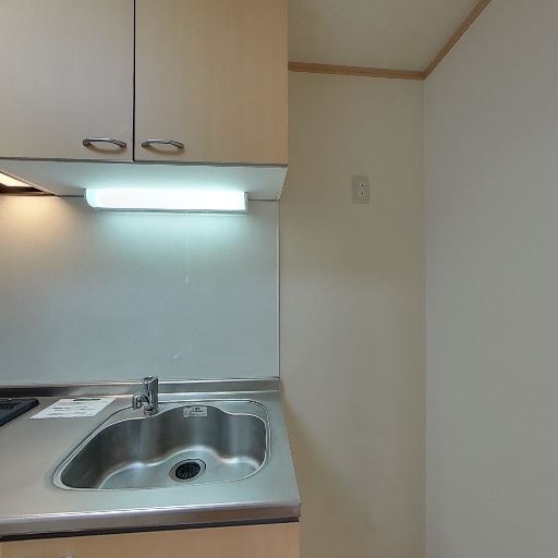 室内物干し・棚の有無(確度62%):キッチン脇に小さな棚板やフック用の下地があり、収納や家電置き場として使えそう。