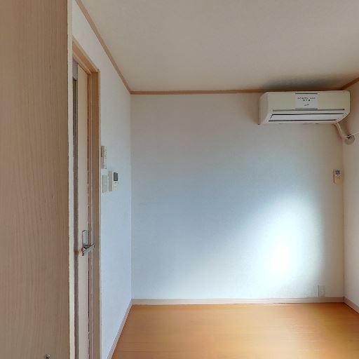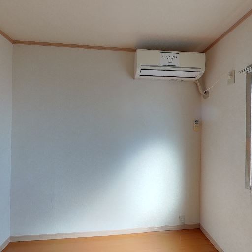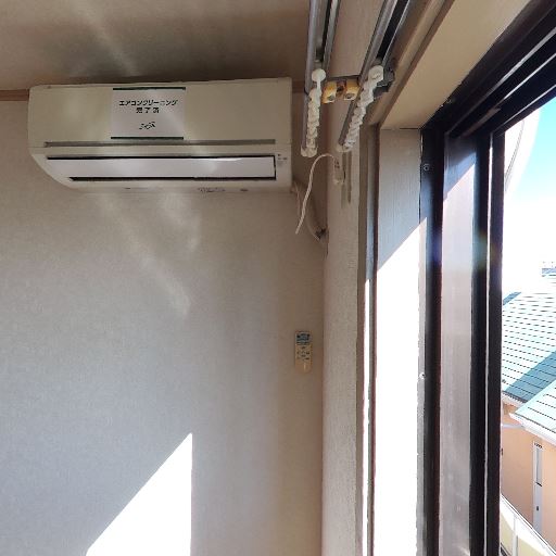 空調設備(確度86%):壁掛けエアコンが設置済みで、専用リモコンも見える。