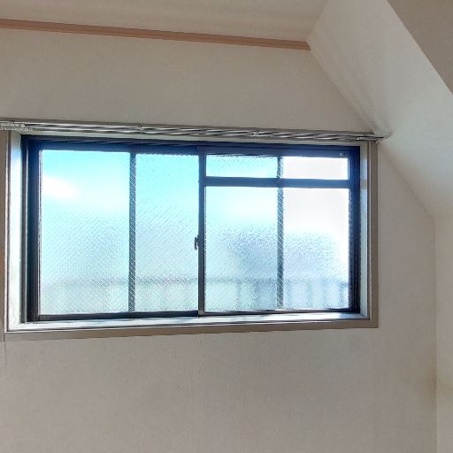 採光と窓(確度82%):大きめの横長窓があり、すりガラスと網入りガラスで外光は十分入るが視界は限定される。