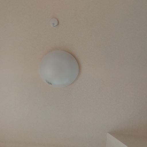 照明・火災警報器(確度80%):天井にシーリングライトと感知器あり。十分な室内照度が見込め、安全面も確保。