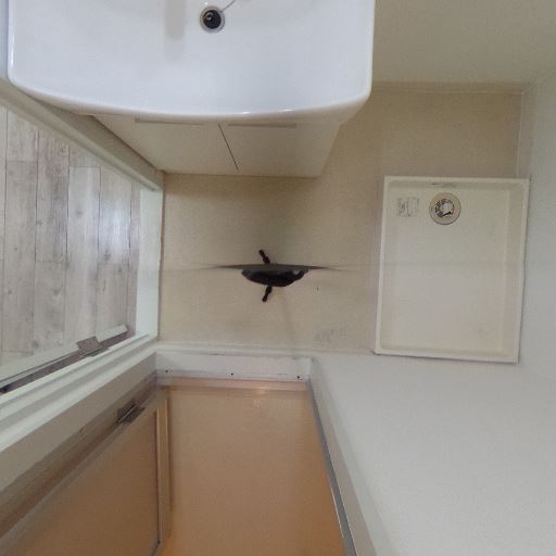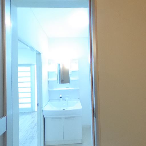 • 居室・キッチンへのつながりが確認できる(確度84%):左側の開口部からキッチンを含む居室空間が見え、洗面所が住居の中心動線に近い位置にあると推測される。