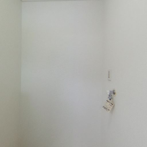 • 壁紙は清潔感のある明るい色味(確度88%):全体的に白〜アイボリー系でまとめられており、空間が明るく清潔に見える。右側の壁にはうっすら柄も確認できる。