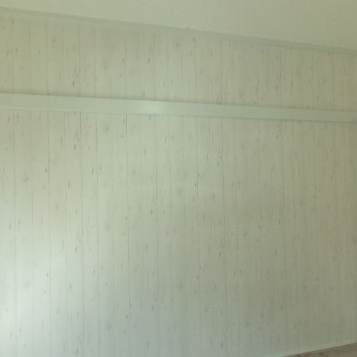 • アクセントクロスで内装が明るい印象(確度84%):片側の壁面に木目調の明るいクロスが使われており、シンプルながら単調すぎない内装に見える。