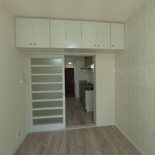 • キッチンと居室が引き戸で緩やかに区切られている(確度87%):半透明の引き戸があり、キッチン側と居室を分けつつ、閉めても圧迫感を抑えられる構成になっている。