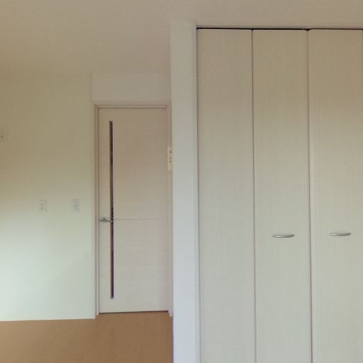 収納クローゼットあり(確度88%):折れ戸のクローゼットが壁一面に設けられている。