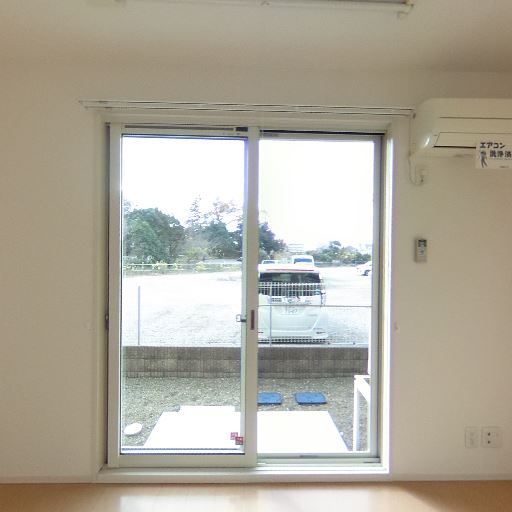 エアコン設置済み(確度92%):窓横の壁面にエアコン本体が見える。
