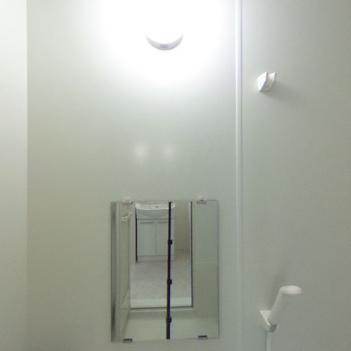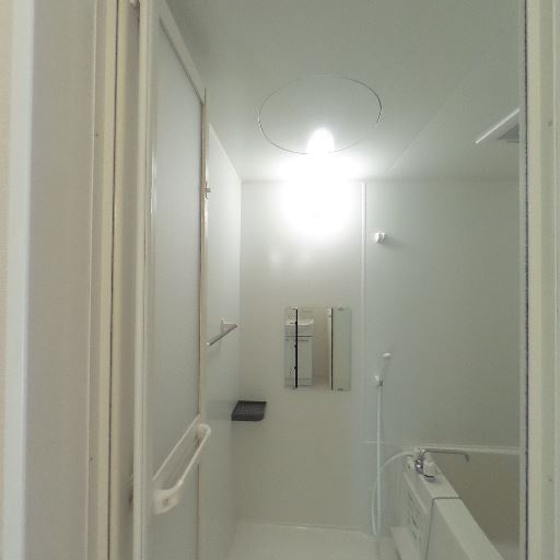 バスルームの清潔感(確度78%):浴室は白基調で照明も明るく、壁や浴槽に大きな傷やカビは見当たらない。