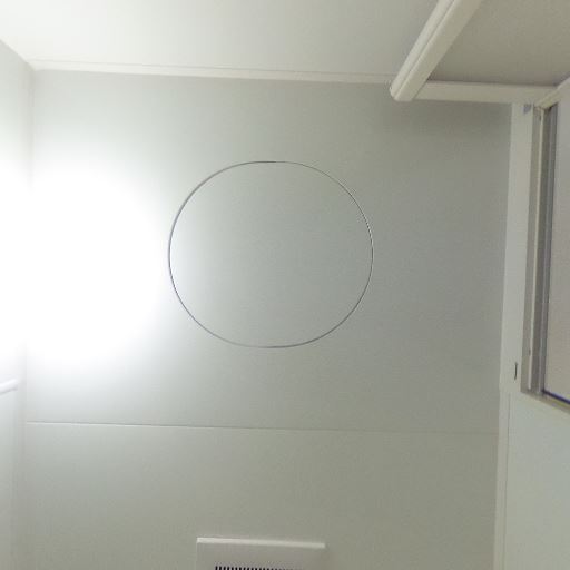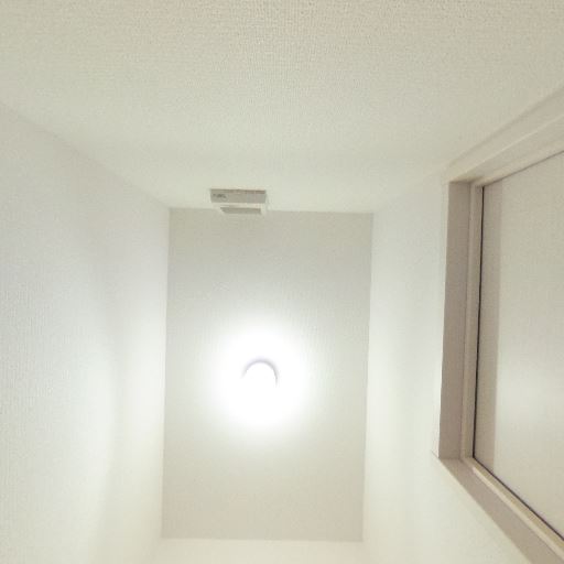 換気・照明(確度86%):天井中央に照明、換気扇が確認できる。窓は見当たらないため機械換気が主。