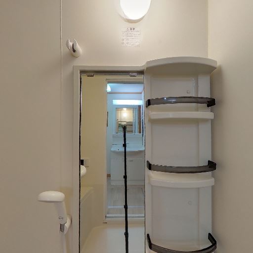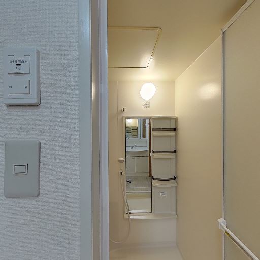 • 浴室換気・照明が良好(確度84%):天井に換気扇、壁面に照明器具があり、明るさと換気が確保されている。