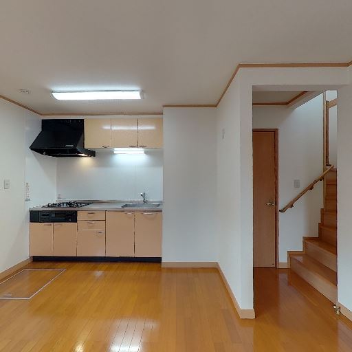• 手すりと踏面の状態(確度77%):階段には手すりが設置され、踏面はフローリングで角も比較的きれい。