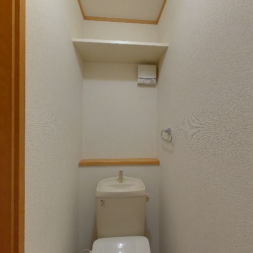 • 収納棚とニッチ(確度86%):便器上に横長の棚と小さなニッチがあり、トイレットペーパー等を置ける。