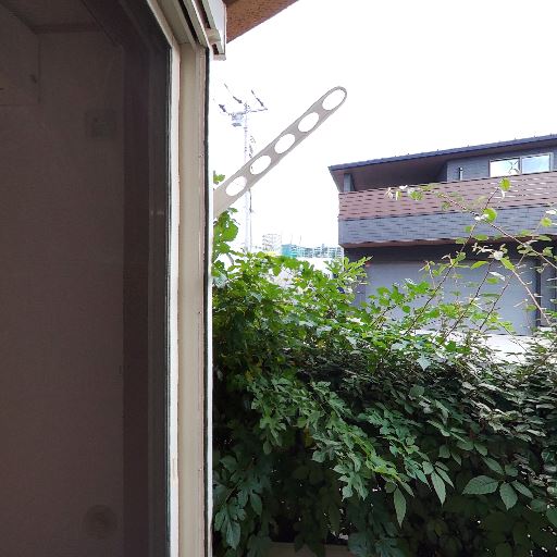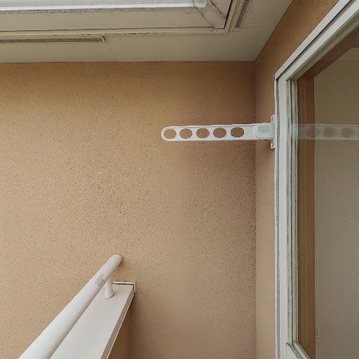 • 屋外物干し金具の存在(確度90%):外壁に折りたたみ式の物干し金具が設置されている。