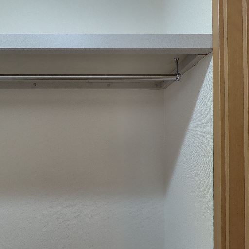 • クローゼットの収納(確度86%):棚とハンガーパイプが確認できる収納スペースがある。