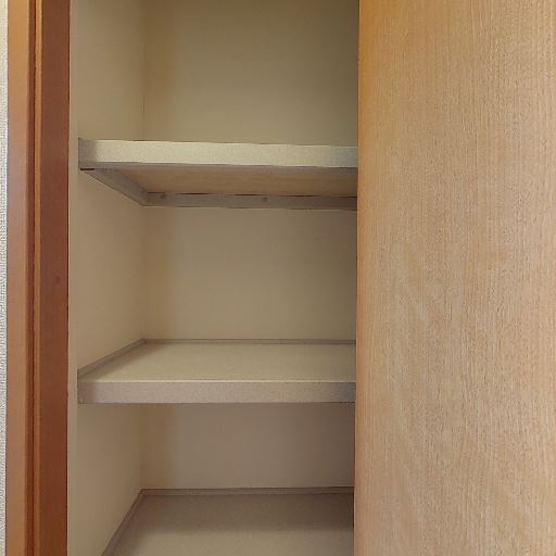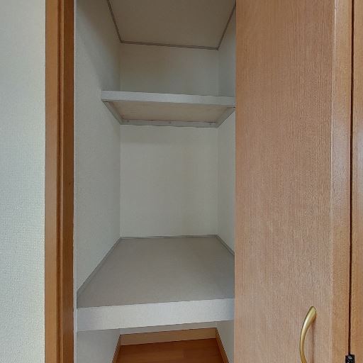 • 収納棚付きの物入れ(確度86%):可動ではなさそうな固定棚が複数枚あり、掃除道具や日用品のストックを分類して置ける。