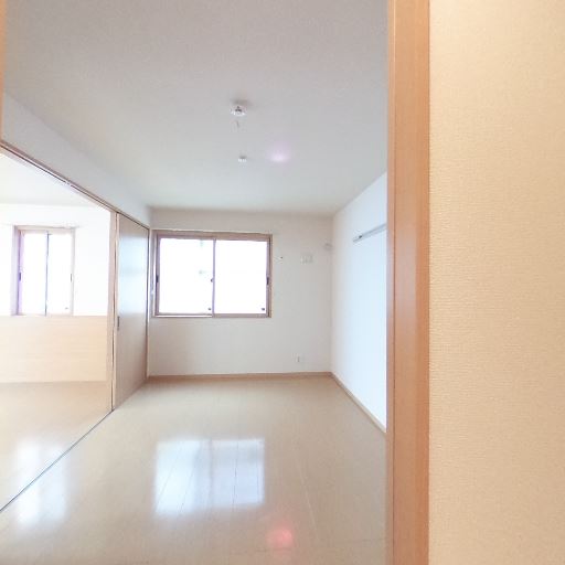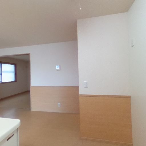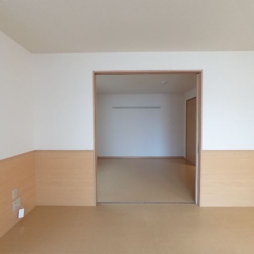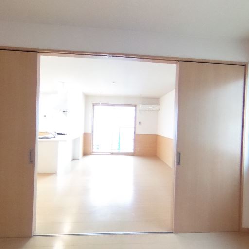 • 引き戸の先にもう一室がある(確度79%):リビングから続く開口部の先に別室が見える。間仕切りは引き戸レールの跡があり、個室化できそう。