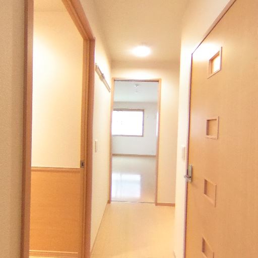 • 採光・照明(確度70%):天井照明が明るく、廊下奥に窓からの自然光も入っている。