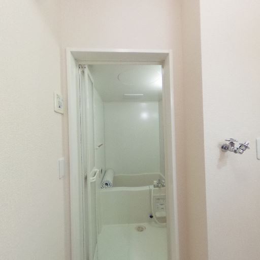 • 浴室が隣接しアクセス良好(確度82%):洗面所から直接浴室への出入口があり、浴槽や浴室内の手すりが見える。