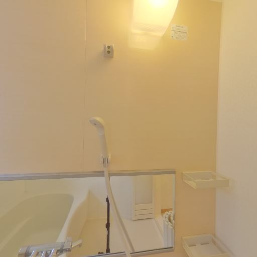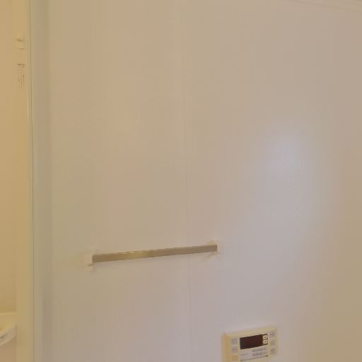 追い焚き・給湯リモコン(確度73%):浴室内の壁に操作パネルがあり、湯温調整や追い焚きが可能と推測。
