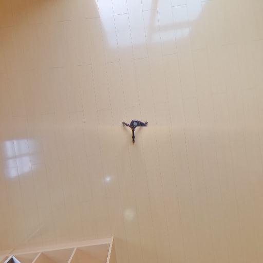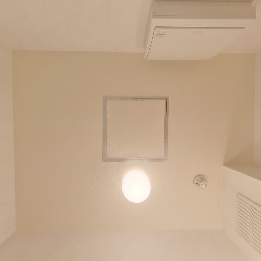 換気設備あり(確度80%):壁面に換気口と天井照明近くにダクトのような開口が見える。
