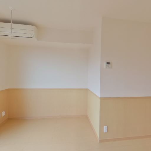 エアコン設置済み(確度86%):居室側の壁面にエアコン本体が見える。