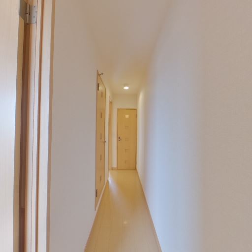 採光の入り方(確度62%):廊下の先に明るい居室が見え、自然光が届いている可能性。
