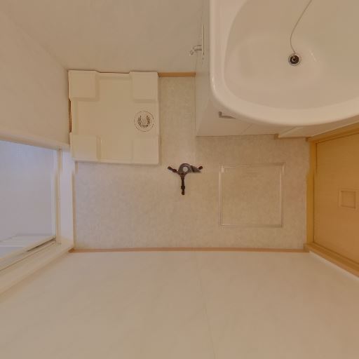 洗濯機置き場完備(確度88%):床に洗濯機パンと給水栓・排水口がある。