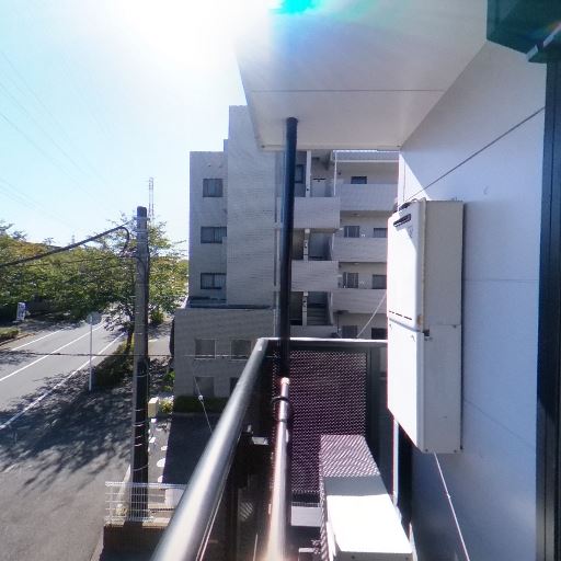 物干し金物の設置あり(確度86%):手すり上部に物干し竿受けが確認でき、洗濯物が干せる。