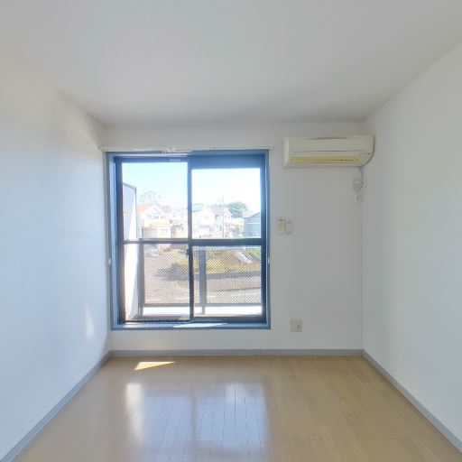 エアコン設置済み(確度92%):窓の右上に壁掛けエアコンが設置されている。