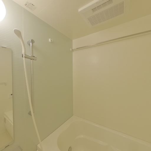浴室乾燥機付き(確度90%):天井に換気乾燥機の吹き出し口が見える。洗濯物の乾燥やカビ対策に役立つ設備。