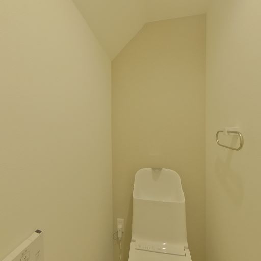 内装の状態(天井形状)(確度63%):便器上部の天井が斜めに下がっている造作があり、配管や階段下の可能性。特段の傷みは見えない。