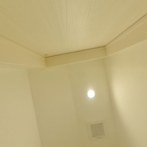 換気設備と天井照明(確度78%):天井にダウンライトと換気口がある。