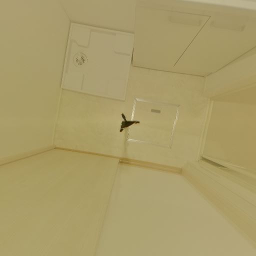 換気設備と照明(確度86%):天井にダウンライトと換気口があり、明るさと換気が確保されている。