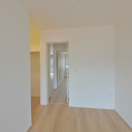 室内の清潔感と新しさ(確度80%):壁・天井・建具とも白基調で汚れやヤニ染みは見当たらず、全体にきれいな印象。